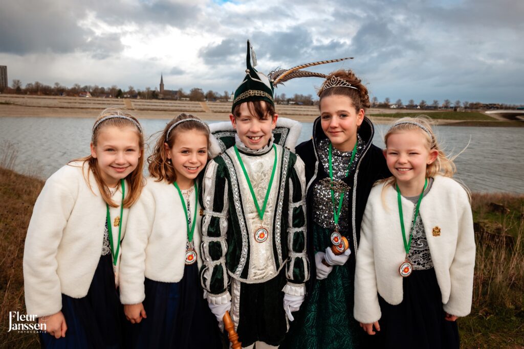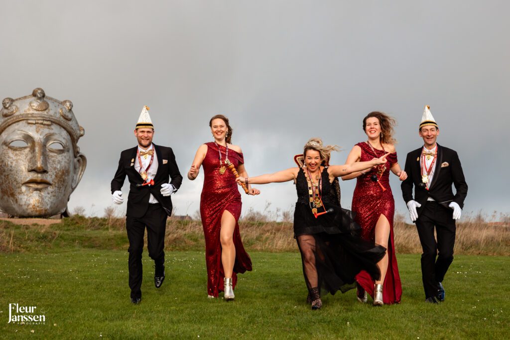 Prinses Daniëlle d’n eerste met hofdames Marieke en Chantal en adjudanten Rik en Paul